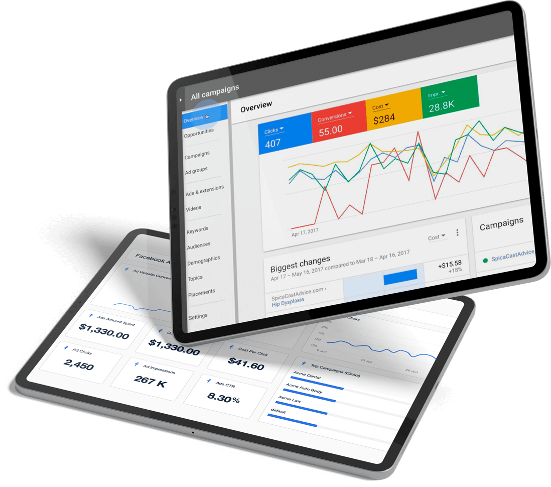 Acompanhamento das campanhas e do desempenho de cada anúncio.