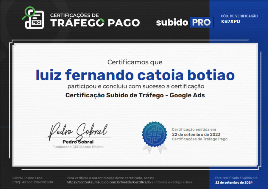 Faço parte de um grupo seleto de pessoas que conseguiram tirar a certificação de conhecimentos em tráfego pago, tanto no Facebook ADS quanto no Google ADS.